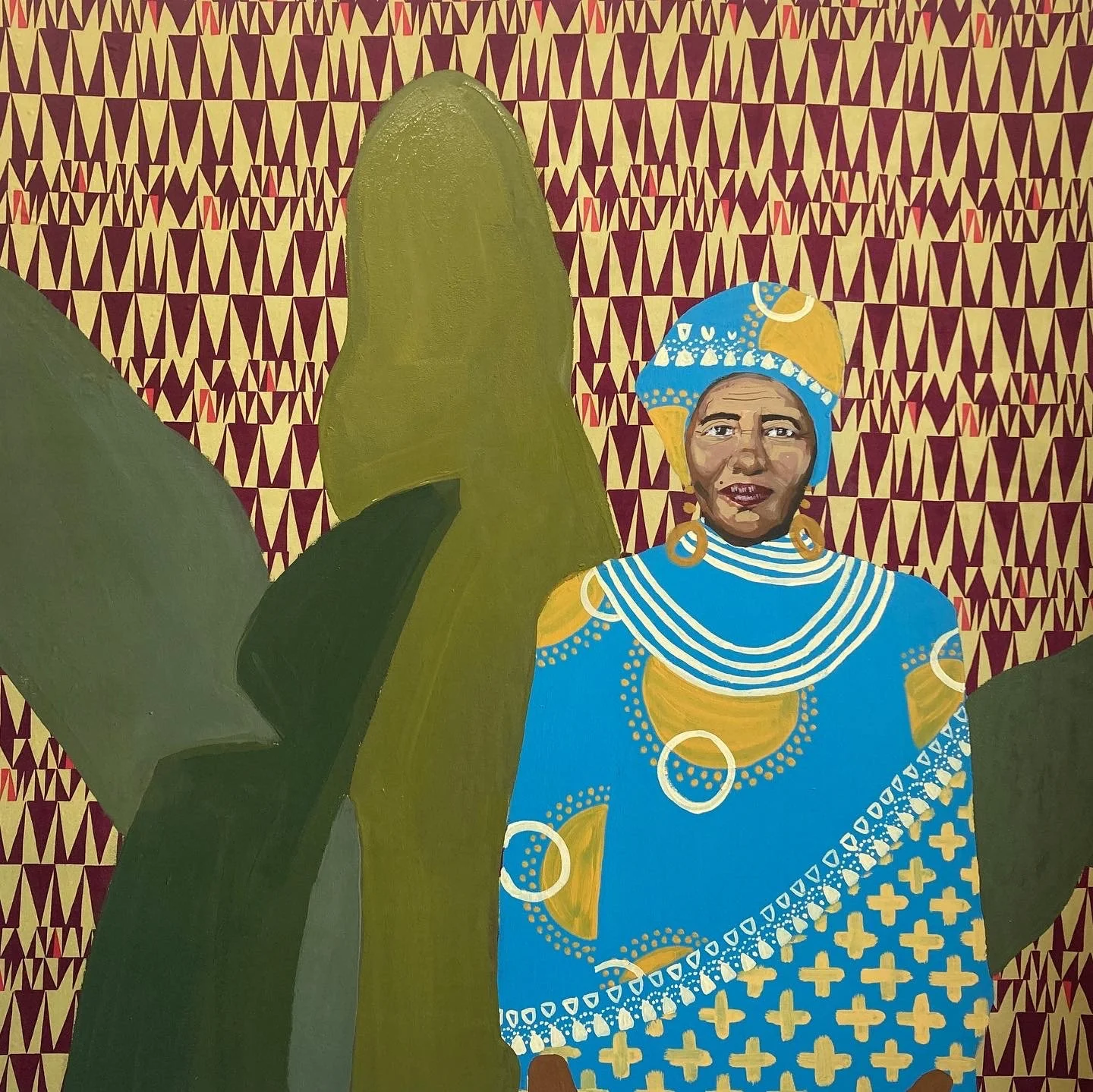 House paint, acrylic, drywall mud, found textile, and inkjet prints on canvas